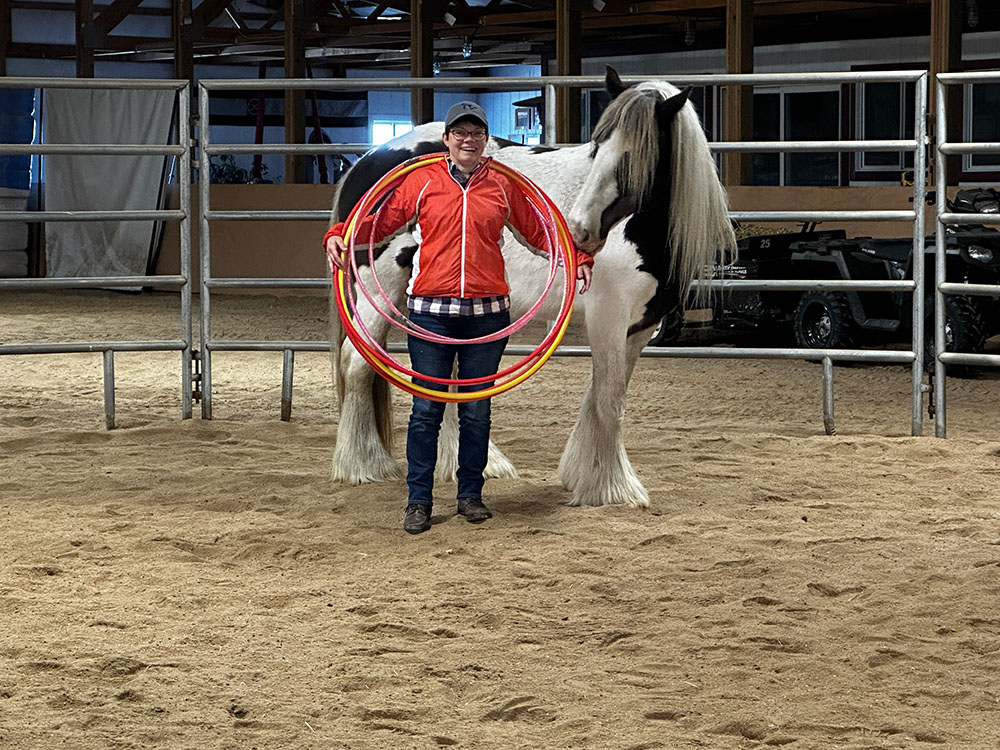 Since Rhiannon had worked out so well here she was inquiring if I had an interest in her daughter. YES! Ella is a large elegant Gypsy mare with a ton of personality. She has rapidly discovered her talents in our EGC method and is a client fav.
